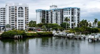 The Portofino South Condominiums, right, at 3800 Washington Road on January 30, 2026, in West Palm Beach, Florida. |