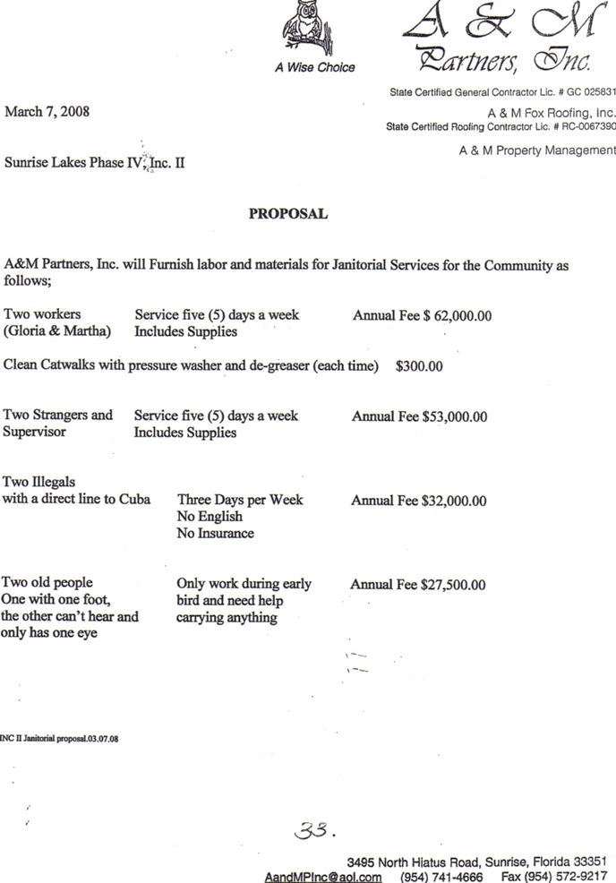 PROPOSAL FOR JANITORIAL SERVICES: Two illegals with a direct line to Cuba! |