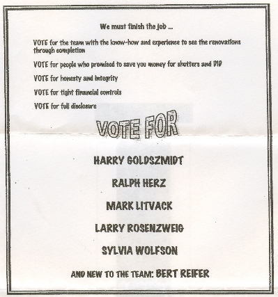 In a recent second election notice of THE ASSOCIATION FOR THE PLAZA OF BAL HARBOUR CONDOMINIUM, INC. this flyer was included: