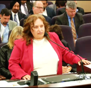 Barbara Stage, Esq., speaks in front of the Senate