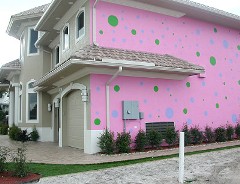 Most wars over colors are fought in homeowners' associations over the taste of colors. Often enough communities don't have straight color guidelines, but boards make decisions, often depending on their own personal tastes. And the "approved" colors seem to change depending on the taste of the president's wife – or the female president of the board! Very often these color wars are getting out of hand -- as a family in Port Orange found out. They had lost their home’s roof to a hurricane. After a month of waiting to replace the roof, they finally replace it with beige tiles. Then the association sued them because black tiles were the approved color for tiles. The regular black tiles were not available at the time -- and the next hurricane season was looming on the horizon. Finally, a kind roofing company replaced the beige tiles with black ones -- for free -- in order to avoid another color war! Realtors will tell you that the potential buyer’s first "view" is very important -- and the home’s exterior is a big deal-maker! So, if a buyer falls in love with a pink home, the new homeowner surely thinks it's his good right to repaint it in the same color as the original home. Not so, said the board of a homeowners' association in Palm Beach County, and sued a homeowner who repainted her home in the original colors. The following lawsuit was a lot more expensive than painting and repainting together. But the dispute surely made the attorneys happy! Just recently the Villas Del Mar Property Owners' Association in Boca Raton barely escaped a very expensive legal confrontation. A homeowner, who asked for permission to repaint his home in the original colors, was threatened -- verbally and in writing -- that the paint color wasn't approved, because in the opinion of the board the paint used wasn't the original shade! This is the home in question! Would you consider this home a threat for the neighbors' property values.