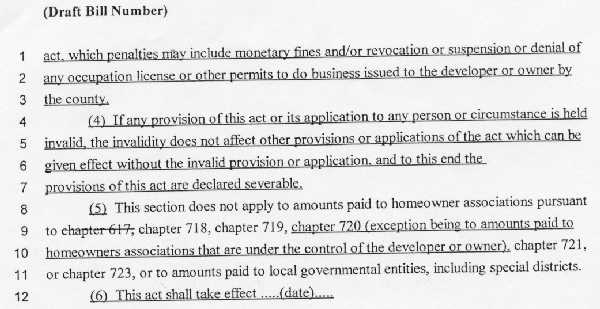 Admittedly, after looking through the documents provided by CHIP, lots of work has been invested. The idea of proper disclosure and financial reports is definitely not new and is very necessary. But without the necessary enforcement, all these efforts are wasted. In my opinion it’s no miracle why politicians and lobbyists are jumping on the bandwagon to help pass these bills. They really don’t change any provisions, leave the industry where they want to be – untouchable – and will give everybody involved a good excuse for the next few years again: we just enacted new HOA reform. Nothing will change for the homeowners, as long as the contents of the bills are not enforced by the State. Local enforcement has proven to be unsuccessful and, sorry, no disrespect intended, only got chuckles out of the bigger developers. According to legal sources county government is unable to deal with these deep pocket industry, because they don’t have the necessary means to deal with these problems. Reasons? Personal experience!