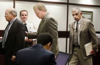 Pinellas prosecutor and private attorney Aaron Slavin, center,