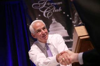 Republican Gov. Rick Scott, greets people as he visits the Forum