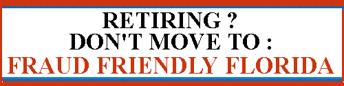 Who runs the show in Florida? NOT the citizens! Industry, especially the housing industry, relies heavily on retirees. Meanwhile, our state government follows their lead to lure more elderly, trusting people to Florida without improving their living conditions. For many years homeowners' activists from all over Florida have called for reforms of the laws regulating the housing industry. There are many laws -- looking great on paper -- but without any teeth. The existing laws are more or less used to appease the consumers who ask questions. Only after you fall for all the great words backed up by fraudulent contracts and promises, you will find out that these laws are more or less unenforceable. Your own money will even help to defend the violations against YOU! Many Florida Statutes will give consumers a false sense of security. However, if you do not have large sums of money available to pay for legal fees, your chances to defend your rights are very small. Even then the outcome of these lengthy and frustrating lawsuits are very dubious, to say the least. Retirees in Florida are losing their homes to foreclosure, not because they didn't pay their bills as required, but because the laws of Florida leave them unprotected. Little mistakes might cost you your home and your life-savings! The nice lady organizing the social potluck dinner in your community might be the wife of the board president of your association. So don't bring the wrong cake! You might find yourself at the wrong side of violation letters -- like bushes not trimmed or too many weeds! And some of these associations are very eager to enforce these "violations" by putting liens on your property and then foreclosing on it. You wouldn't be the first kicked out of your own home by a deputy with your private belongings next to you on the curb. Just read the many stories about problems in these homeowners' associations or the Condo-wars raging in South Florida! And there are some real horror stories like the story of the homeowners in the Eagles Reserve HOA in Pinellas County, where most likely more than 120 homeowners will either lose their home or have to pay more than $100,000 on top of the original purchase price. Their pleas to government agencies were ignored. These citizens, many retirees among them, are left to fend for themselves. An unbelievable example of the huge problems! In the last two sessions of the Florida Legislature so-called Task Force bills were introduced. In both cases the members of the Florida House of Representatives made serious efforts -- 14 members sponsored the bill. But in both years the Senate made sure it failed. While the bill was totally ignored by the Senate in 2002, Senate members in 2003 changed the wording before the first committee hearing and were unwilling to listen to amendment proposals. In the end, homeowners' activists had to ask House members to kill the bill for fear it would do more damage than good! Our Governor Jeb Bush, who could create a Task Force by executive order to circumvent the obviously non-functioning legislative process, has been approached twice. So far he has not responded. Common Sense would dictate, as it does in normal business, that improvements are necessary to attract more retirees. But where is Common Sense? Most likely not in our State's government! Admittedly, retirees are BIG business. It is obvious that Florida is trying to attract more retirees to get their money -- without being willing to protect their rights. Retirees from all over the nation should heed the warning of the ones who have already fallen into this trap of a warm climate: