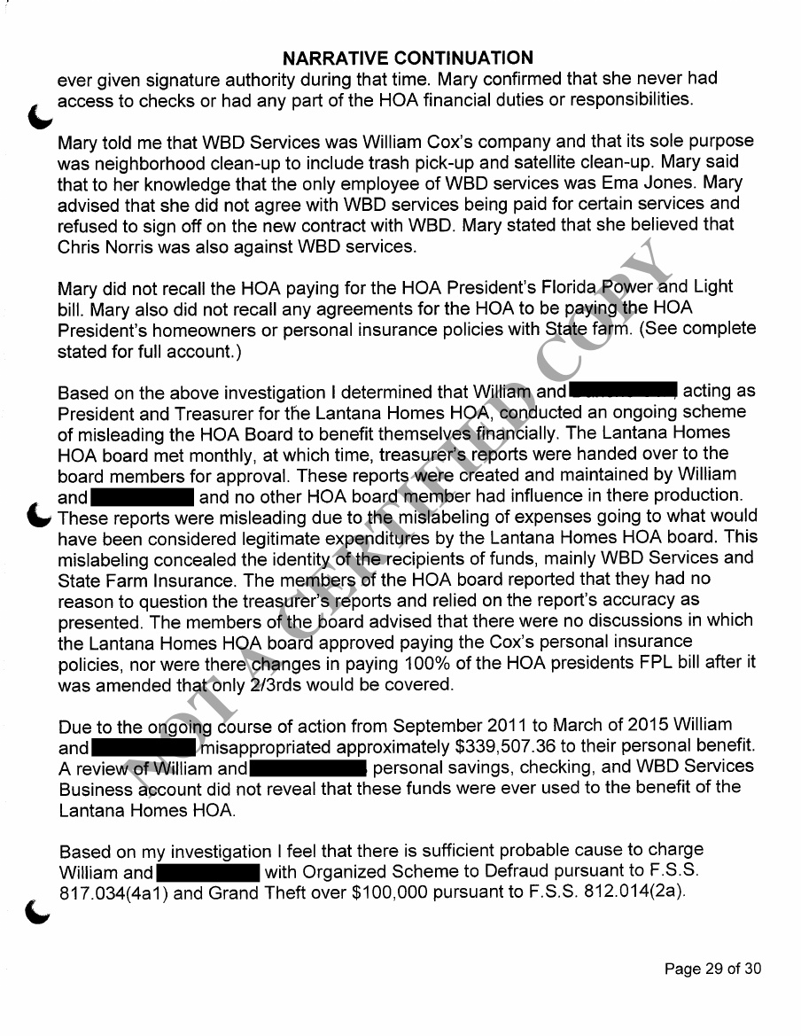 LAKE WORTH -- A husband and wife from Lake Worth, who are former leaders of the Lantana Homes Homeowner's Association, are accused of using HOA money for their personal bills.