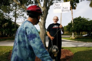to the homeowner association. Residents fought that move, worried about being saddled with so much expense. But with or without ownership of the club, some homeowners say they are being exploited by the association and the community's subassociations. Joyce Camidge, 75, moved to the Deer Hollow section of Tampa Bay Golf before either association existed. The original developer had promised free golf, she said. "My husband wanted that free golf and I love my husband." When new developers took over, the Camidges were ordered to pay dues to two associations, a bill that topped $2,400 a year — before the recent increase. Between that expense and stock market losses, she said, "We find ourselves asking, can we afford to buy this in the grocery store?" Jack Beverland, 70, writes "under protest" on each check, he said, and walks a picket line with his one-eared dog, Amo. The brother of Oldsmar Vice Mayor Jerry Beverland, he is a successful artist. "I don't miss a meal," he said. "But there are some ladies in here who are going to." Donald Mounts, a retired New York City police detective, expressed his outrage in a letter to club managers after they announced the increase in dues. While careful not to call anyone a criminal, he wrote, "I never thought that I again would be looking at individuals and organizations preying on those who they believe cannot fight back." Reckless spending Dues are just part of the story. In the past two years, Gualtieri and his group have uncovered a long list of decisions they consider fiscally unsound. An Internet video, produced by a resident with Gualtieri's assistance, catalogues many of the grievances: The association paid Bright House too much for a bulk cable television deal under a contract that he contends is invalid anyway. The association has paid for lights and water treatment on land belonging to the country club and developer. Residents wonder why they are paying the entrance guard, who works mostly to admit guests to the club. Stuckly, meanwhile, has researched land transfers between the parade of developers. Because of the transfers, she and her lawyer suspect the associations have no jurisdiction over many of the homes. She and Gualtieri also suspect the number is far higher than the 173 that the association acknowledged. Gualtieri also contends that because no contract exists between the country club and the association, the club has no claim to homeowner dues. Repeated calls to TOUSA attorney Paul Berkowitz and association president Andrew Chambers, who also works for TOUSA, were not returned. But at the November homeowners' meeting, Chambers told the crowd that the association can and should continue to collect from all members, and fund the club as well. He and the other officers are aware of the steep increase, "which we're working on," he said. "But we are responsible, as a master association per the documents, to collect those fees and to pay them" to the club. As for a contract, he said, "the written agreement is inherent to the master documents." That issue might be decided in court. Gualtieri, Mounts and two other homeowners sued the association last week in Pasco Circuit Court. They want a judge to rule that collecting dues without a contract violates homeowner documents and Florida law. Not everyone spends their time bashing the developer and association. Resident Basil Grussing, 67, who is on the Egret Landing board, says he just wants what's best for his community. Grussing retired at age 52 after working as a quantitative analyst. He now has a part-time tax preparation business. A nine-year resident, he believes the association is acting legally, based on the opinions of lawyers they have consulted. He would not comment on the tactics of Gualtieri's group. In any such community, amenities exist to sell homes, he said, and owners rarely appreciate the true cost when they buy in. "The reason for living here is the amenities. That's why they were here, and a lot of us bought into the community believing we would use the amenities,'' he said. "Most of us don't use them the way we thought we would, but that's neither here nor there." The corporate veil Nothing is simple at Tampa Bay Golf, not even the question of who owns what. Members of the Falcone family, prominent developers in Florida and Philadelphia, founded Transeastern Homes in the 1980s. Transeastern later merged with TOUSA and bought some Tampa Bay Golf holdings from an entity called Bayswater. TOUSA is in bankruptcy reorganization and taking bids on its properties, including the unsold lots at Tampa Bay Golf. The Falcone Group owns the country club. It is losing so much money that, according to a September letter from the country club's mangers, the Falcones can no longer pay their mortgage. Stuckly began her investigations two years ago, upset about an $800 assessment in Deer Hollow for a road project. Gualtieri, separately, started asking questions because the Bright House arrangement intrigued him. When the two met, things snowballed. They both hired lawyers and demanded records. Gualtieri said his group is hoping for a court date in January. Will they prevail? "My heart says yes," Beverland said. "But my gut says, I don't know. Because those people aren't stupid either." For one thing, the developer and country club owners could let the golf course go out of business. Not wishing that outcome, Gualtieri is talking to a residents' group that might buy the club. But he also has begun conversations with nearby Lake Jovita and Lexington Oaks — and with a bus service for the golfers. |
