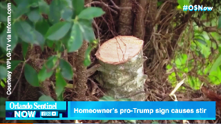 banner that read, “Trump 2020: No More Bull----” in his front yard.''