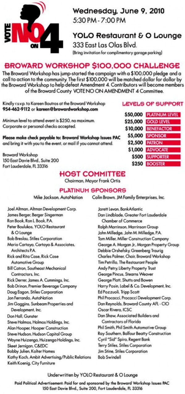 And the opponents of Amendment 4 are lining up with big money, because they know that it is more difficult to convince citizens about the value of a comprehensive land use plan than it is to bribe a crooked politician.