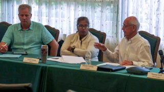 Association Directors Matt Bramson and Luisa Conway, left, listen to