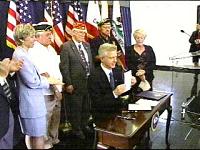 LOS ANGELES - Californians who live in condominiums can feel free to fly American flags under a new law that was prompted by scattered reports of homeowner associations asking residents to take down flags or remove flagpoles. "That's the last thing that should happen in America after the events of Sept. 11," Gov. Gray Davis said Monday at a bill-signing ceremony held at a condo complex where about two dozen flags were on display. Between 6 million and 9 million Californians live in areas with some kind of community association regulations, said Guy Puccio, a lobbyist for the Executive Council of Homeowners, which has 1,450 California homeowner associations as members. The bill prevents bans on flag display in a resident's "exclusive use" area such as a window or balcony. Puccio said permission would be required to put up a flagpole or other patriotic display in a "common area" for all residents. |