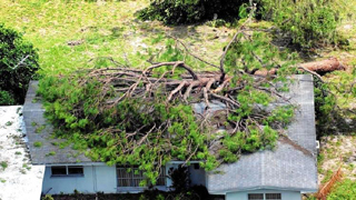 An aerial view of Hurricane Charley damage from