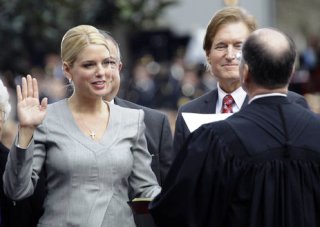 Pam Bondi, left, takes the oath of office for Florida’s